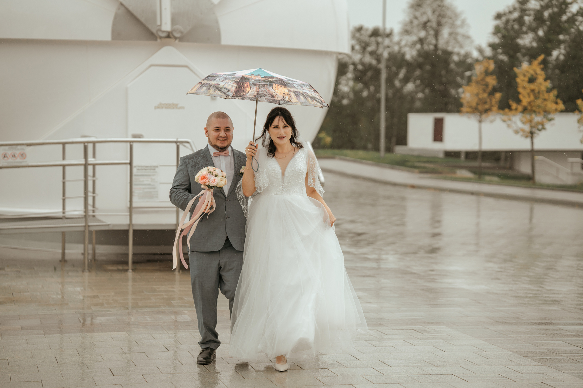 А что если дождь? Есть варианты, но эти молодожены не из робкого десятка, Владимир и Татьяна готовы запечатлеть свою свадьбу в любую погоду.